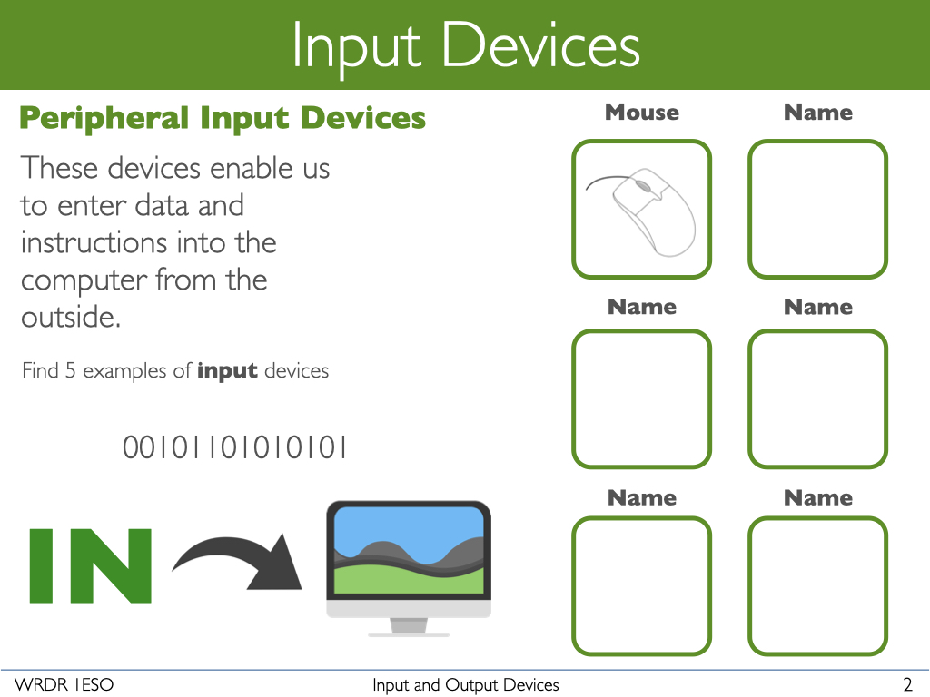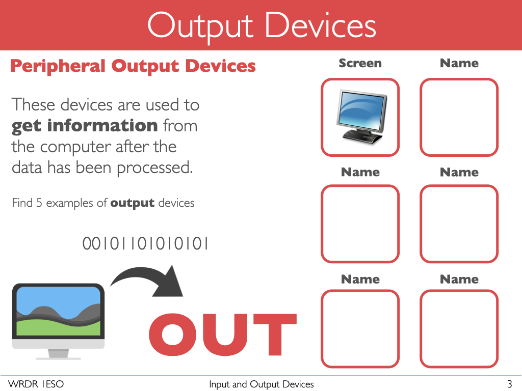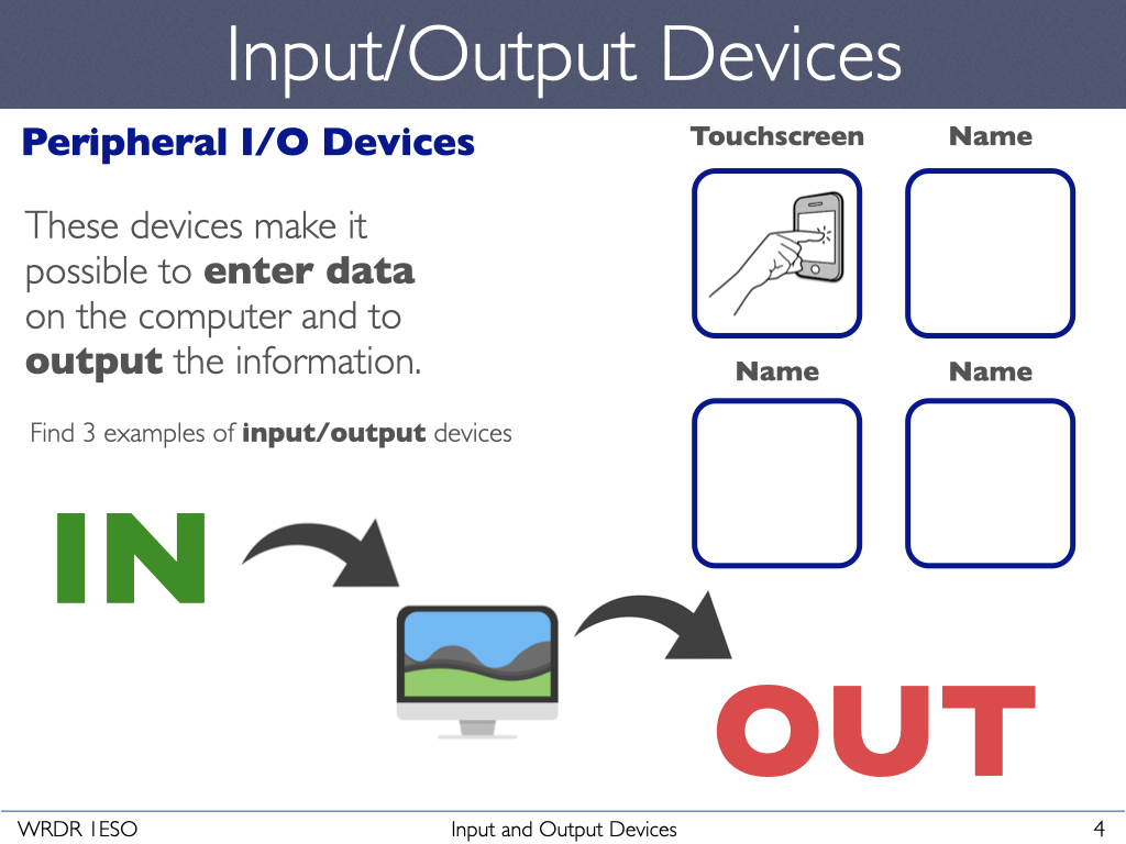 Complete the information on the slides with the input, output, and input/output devices you researched. Make sure to include a relevant image for each device and its name.