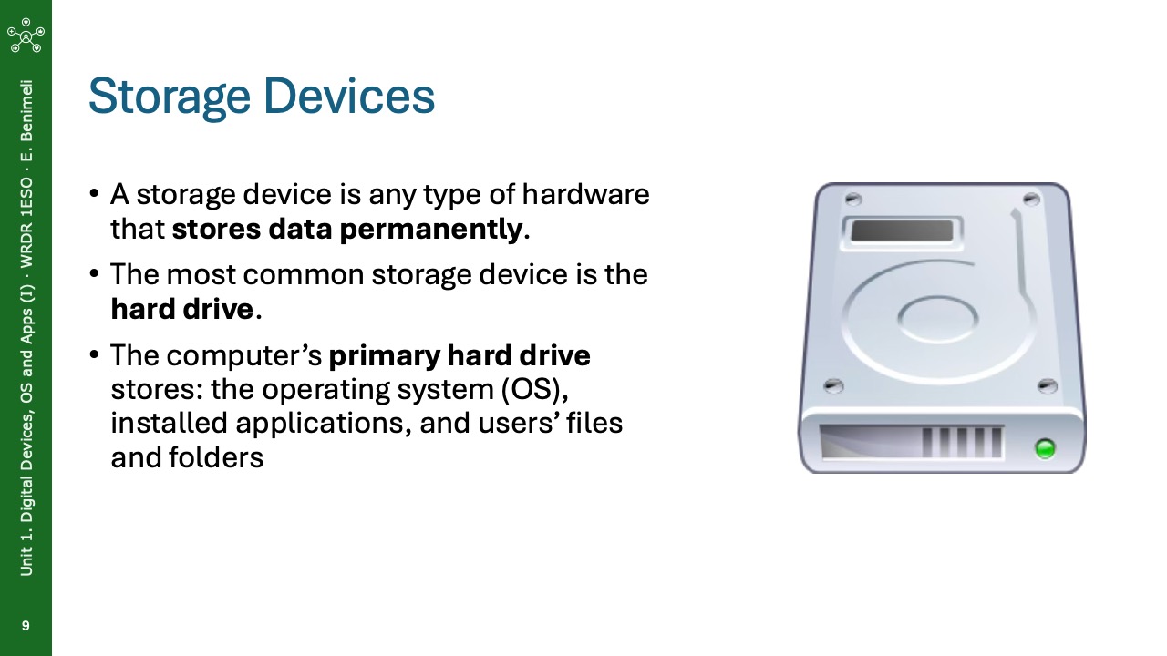 - Data Storage: Digital devices can store information such as documents, photos, and videos. This is done using storage components like hard drives or SSDs (Solid State Drives).
