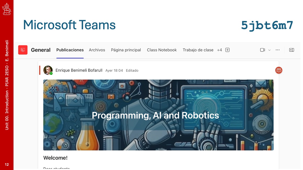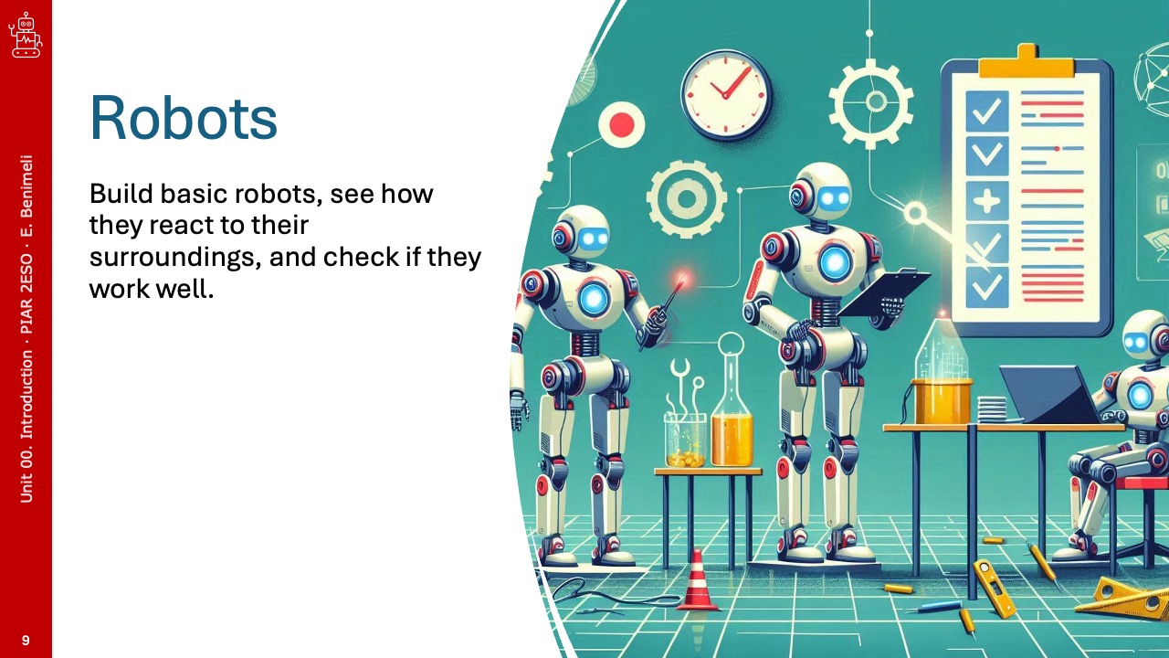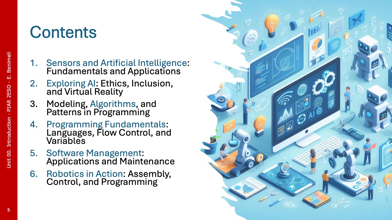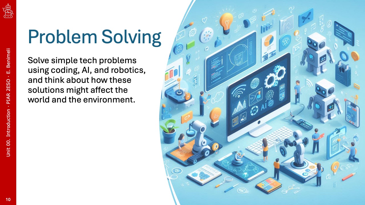 In school, when we learn about artificial intelligence, programming, and robotics, we are using computational thinking, which is like learning to think like a computer. We learn to develop computer programs, use artificial intelligence techniques, and even program robots. We also discuss how these technologies impact society, and we talk about the scientific, ethical, and social aspects of all this. In summary, we are learning very interesting things that help us understand and be part of the modern world.